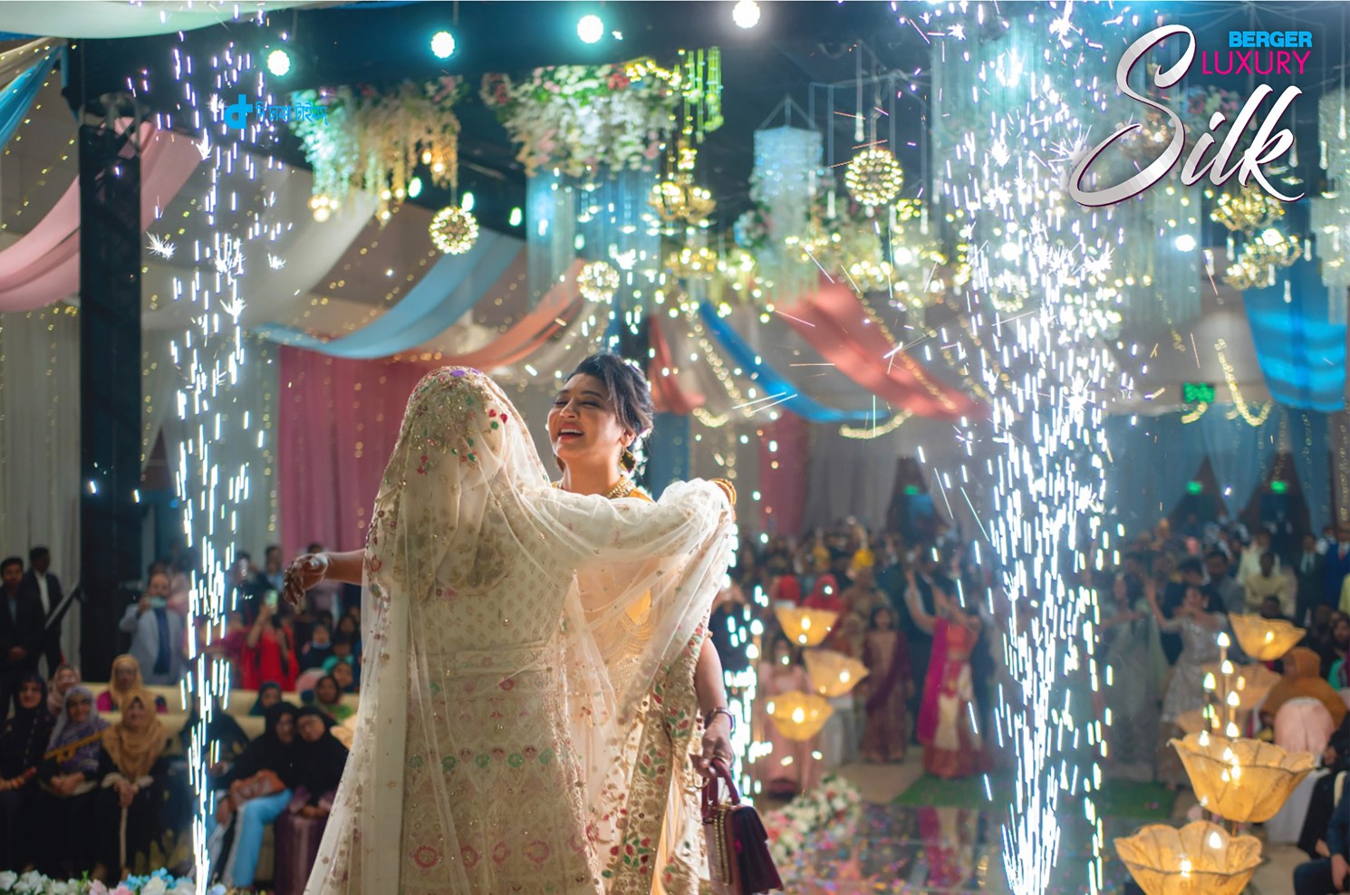 নববিবাহিত যুগলদের জন্য এই বিশেষ দিনটি আরও স্মরণীয় করে তুলতে বার্জার লাক্সারি সিল্কের এই ব্র্যান্ড অ্যাম্বাসেডর বিয়ের আসরে হুটহাট উপস্থিত হয়ে অতিথিদের সঙ্গে তুলেছেন ছবি। শুধু তাই নয়, ক্যাম্পেইনের অংশ হিসেবে তিনি বর-কনের হাতে তুলে দিয়েছেন এক্সক্লুসিভ বার্জার লাক্সারি সিল্ক গিফট ভাউচার, যার মাধ্যমে পুরস্কৃত নবদম্পতি তাদের নতুন ঠিকানাটি লাক্সউরিয়াস সাজে সাজাতেও পারবেন।