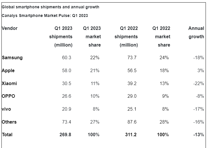 দি ঢাকা টাইমস্ ডেস্ক ॥ ২০২৩ সালের প্রথম প্রান্তিকে বৈশ্বিক স্মার্টফোন রপ্তানিতে ২২ শতাংশ হিস্যা নিয়ে আবারও শীর্ষস্থান অর্জন করলো স্যামসাং।