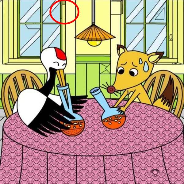 মূলত এই ছবিটি একটি হাতে আঁকা কার্টুন। তবে গল্পটি বহুপুরনো নীতিমালার সেই গল্প থেকে নেওয়া। শেয়াল ও সারসের সেই গল্পে শেয়ালকে জব্দ করতেই কুঁজোয় ঝোল খেতে দিয়েছিল এক সারস। এই ছবিটিও সেই রকম দৃশ্যেরই।