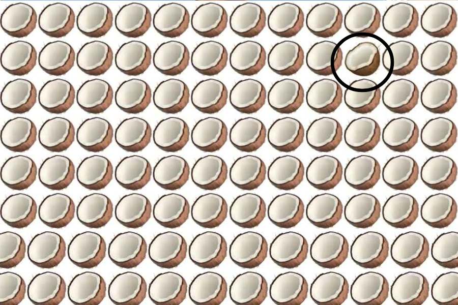 আসলে এই ধাঁধাটি তৈরি করা হয়েছে চোখে ধাঁধা লাগিয়ে দেওয়ার জন্যই। তবে চোখ ধাঁধালে উত্তর খুঁজে পাওয়া বেশ কঠিন হয়ে যাবে। হাতে কিন্তু সময় মাত্র ৫ সেকেন্ড। তাই দ্রুত খুঁজে ফেলতে এই সারি সারি নারকেল মালার মধ্যে লুকিয়ে থাকা একটি আলাদা দেখতে নারকেলটিকে।