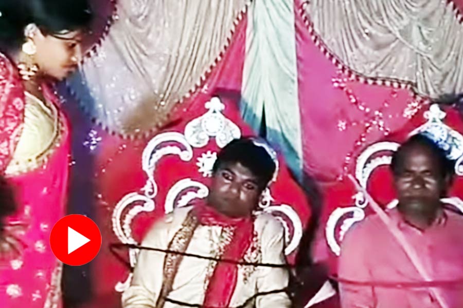 দি ঢাকা টাইমস্ ডেস্ক ॥ নেট মাধ্যমে এক ভিডিওতে দেখা যায়, বরের আসনে বেঁধে রাখা হয়েছে এক পাত্রকে। পাশেই বাঁধা হয়েছে তারই পিতাকে। পিতা-পুত্রকে ঘিরে রয়েছেন আরও কয়েকজন। তাদের হাতে দেখা যাচ্ছে লাঠি।