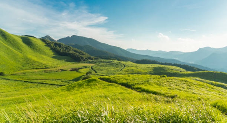 এক সবুজ ঘাস ও সবুজ পাহাড়। এক অসাধারণ প্রাকৃতিক দৃশ্য। এই দৃশ্যটি মূলত জাপানের মি প্রিফেকচারের সেনের মালভূমি।