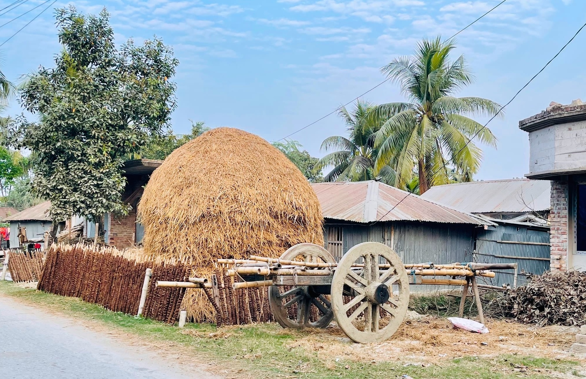 যে দৃশ্যটি দেখছেন সেটি গ্রামের একটি দৃশ্য। গরুর গাড়ি এক সময় গ্রাম-বাংলার ঐতিহ্য ছিলো। কিন্তু দিন যতোই যাচ্ছে এইসব গরুর গাড়ি হারিয়ে যাচ্ছে। এখন আধুনিক প্রযুক্তির কারণে এগুলো বিলীন হয়ে যাচ্ছে।