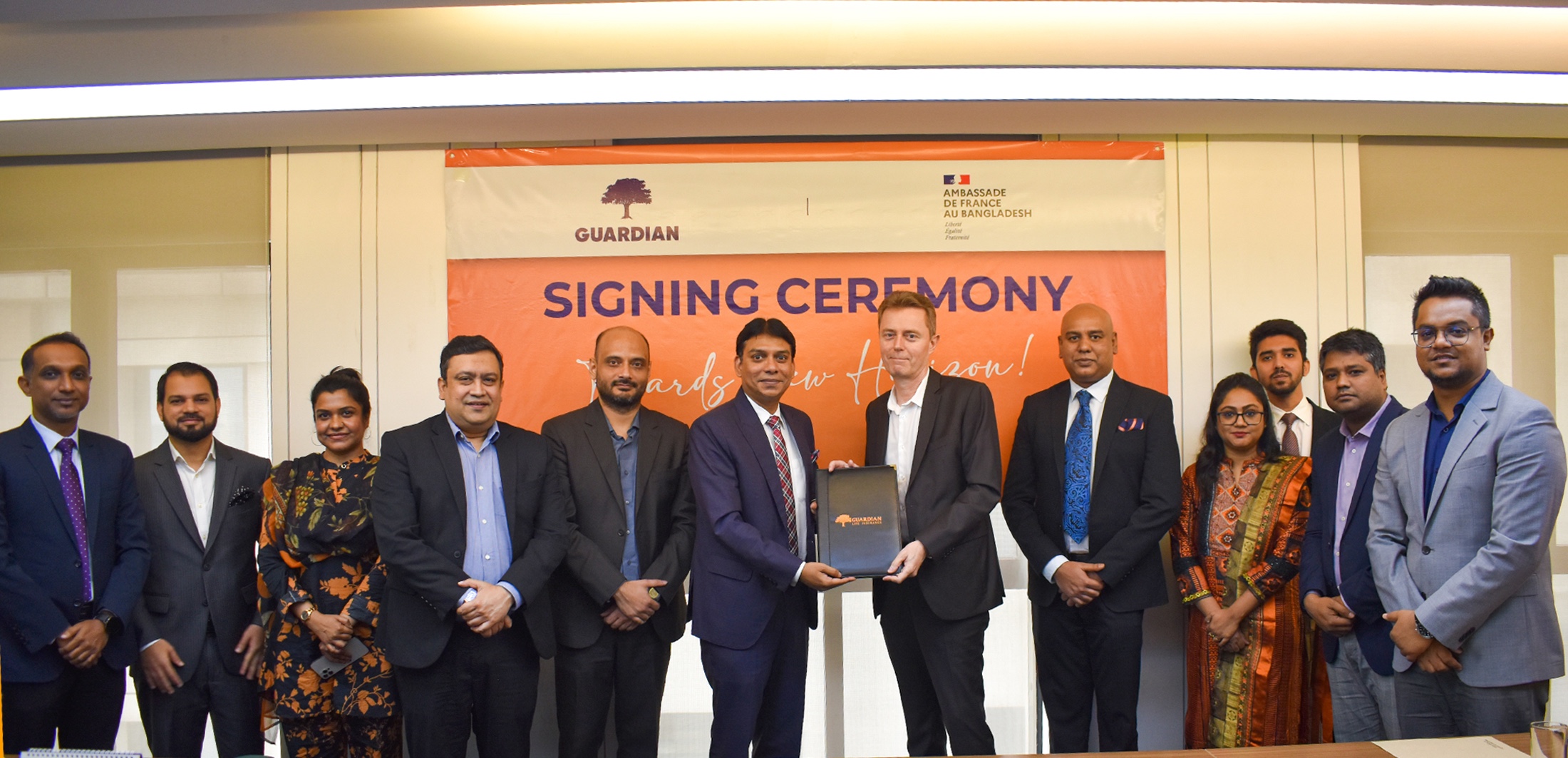 উভয় প্রতিষ্ঠানের উচ্চপদস্থ কর্মকর্তাদের উপস্থিতিতে চুক্তিটি স্বাক্ষরিত হয়। গার্ডিয়ানের অতিরিক্ত ব্যবস্থাপনা পরিচালক ও প্রধান নির্বাহী কর্মকর্তা (ভারপ্রাপ্ত) শেখ রকিবুল করিম, এফসিএ ও ঢাকায় নিযুক্ত ফরাসি রাষ্ট্রদূত ম্যারি মাসদুপুই তাদের নিজ নিজ প্রতিষ্ঠানের পক্ষে এই চুক্তিতে স্বাক্ষর করেন।