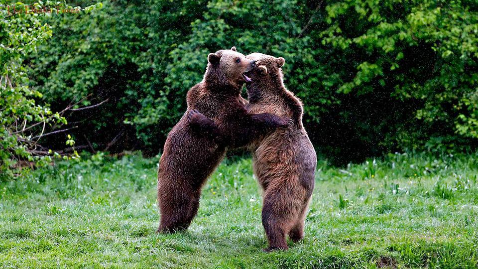 মধ্য রোমানিয়ার জারনেস্টি ভালুক পার্কে দুই ভালুক কোলাকুলি করছে। কতগুলো ভালুককে রাস্তা, দোকানের পাশ থেকে নিয়ে আসা হয়েছে। এরাও তার মধ্যে ছিল।