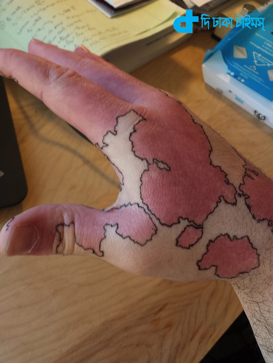 দি ঢাকা টাইমস্ ডেস্ক ॥ মানুষের শরীরে জন্মদাগ থাকে সেটি আমরা জানি। এইসব জন্মদাগ পাসপোর্টে বিশেষ চিহ্ন হিসেবে ব্যবহারও করা হয়ে থাকে। এক ব্যতিক্রমি জন্মদাগের কথা শোনা গেলো। বিশ্বমানচিত্রের ছবি জন্মদাগ হিসেবে দেখা গেছে এক মানব শরীরে!
