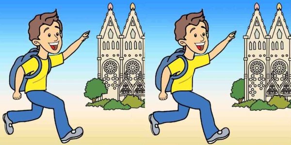 The Dhaka Times Desk Both pictures are of a young man. He is a tourist. The bag is on the shoulder. The young man is walking in front of a church. Besides these two pictures look similar. But there are 3 discrepancies. You find out.