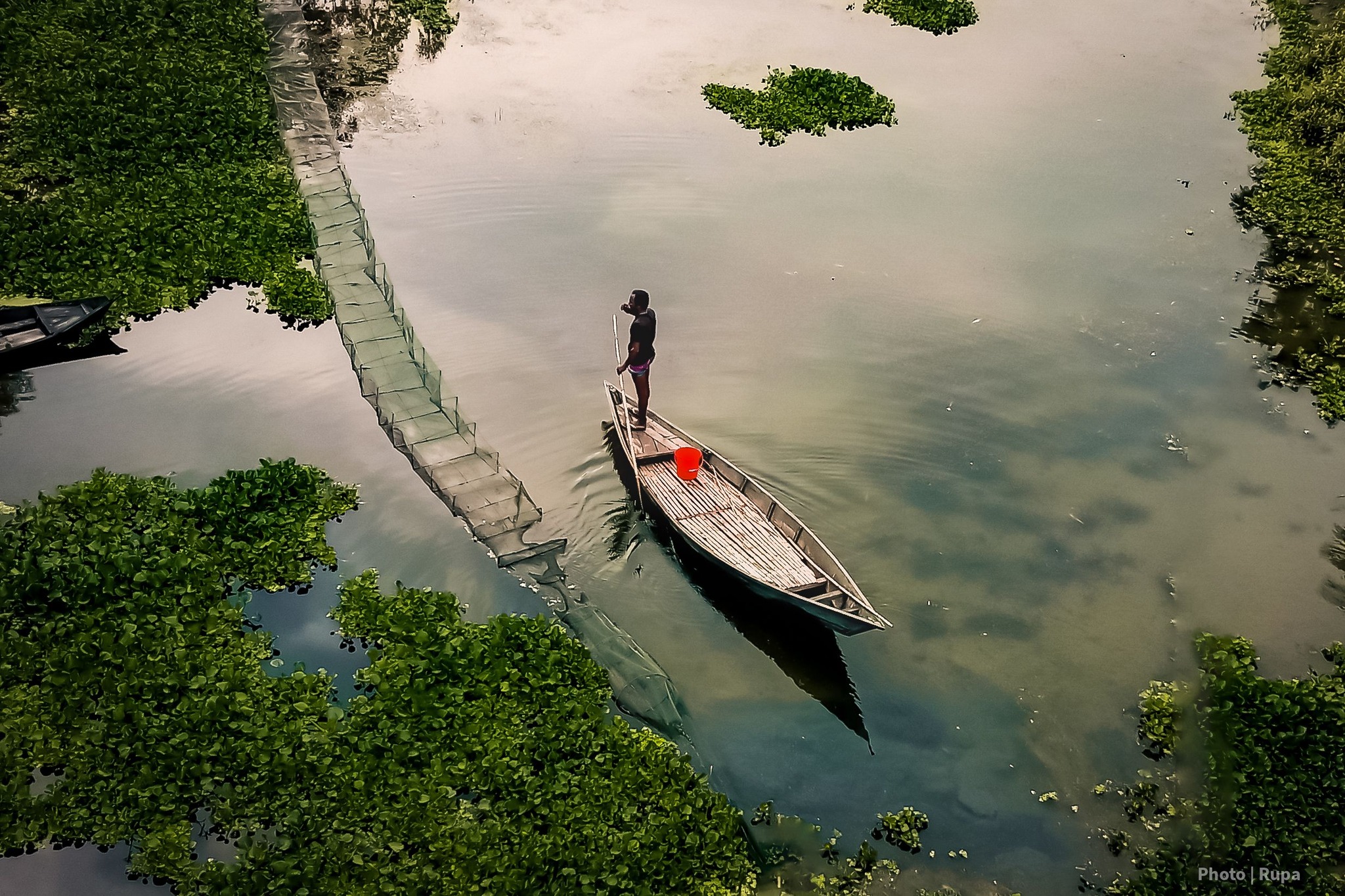নদীতে মাছ ধরার এক অনবদ্য দৃশ্য। কিভাবে গ্রামের মানুষরা নদীতে নৌকা নিয়ে জাল পেতে মাছ ধরে সেই দৃশ্যই এটি। অসম্ভব সুন্দর এক প্রাকৃতিক দৃশ্য।